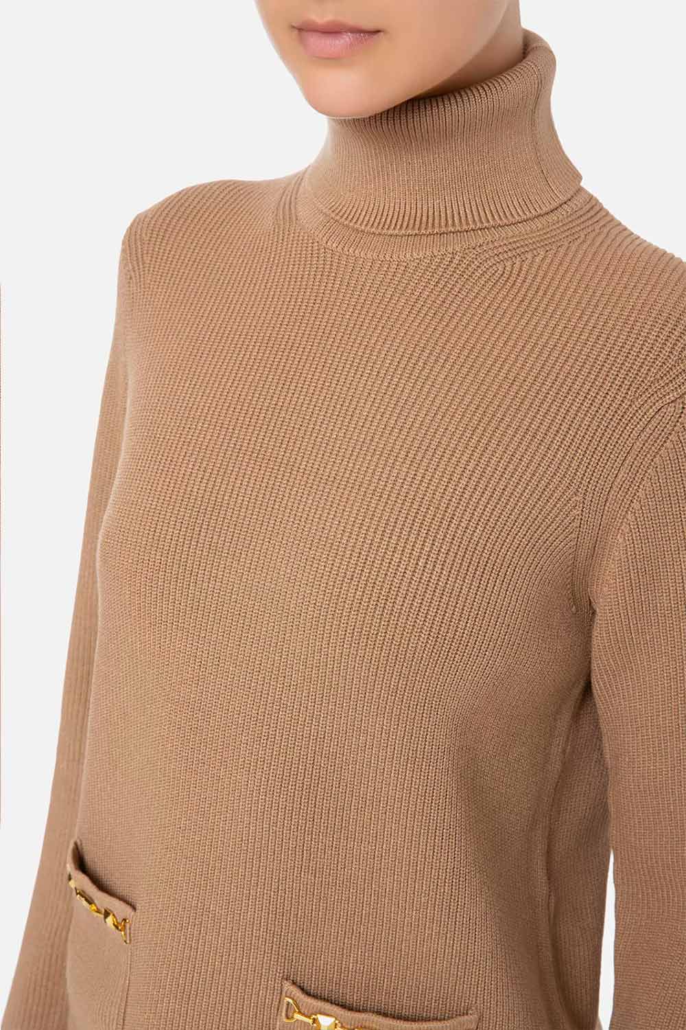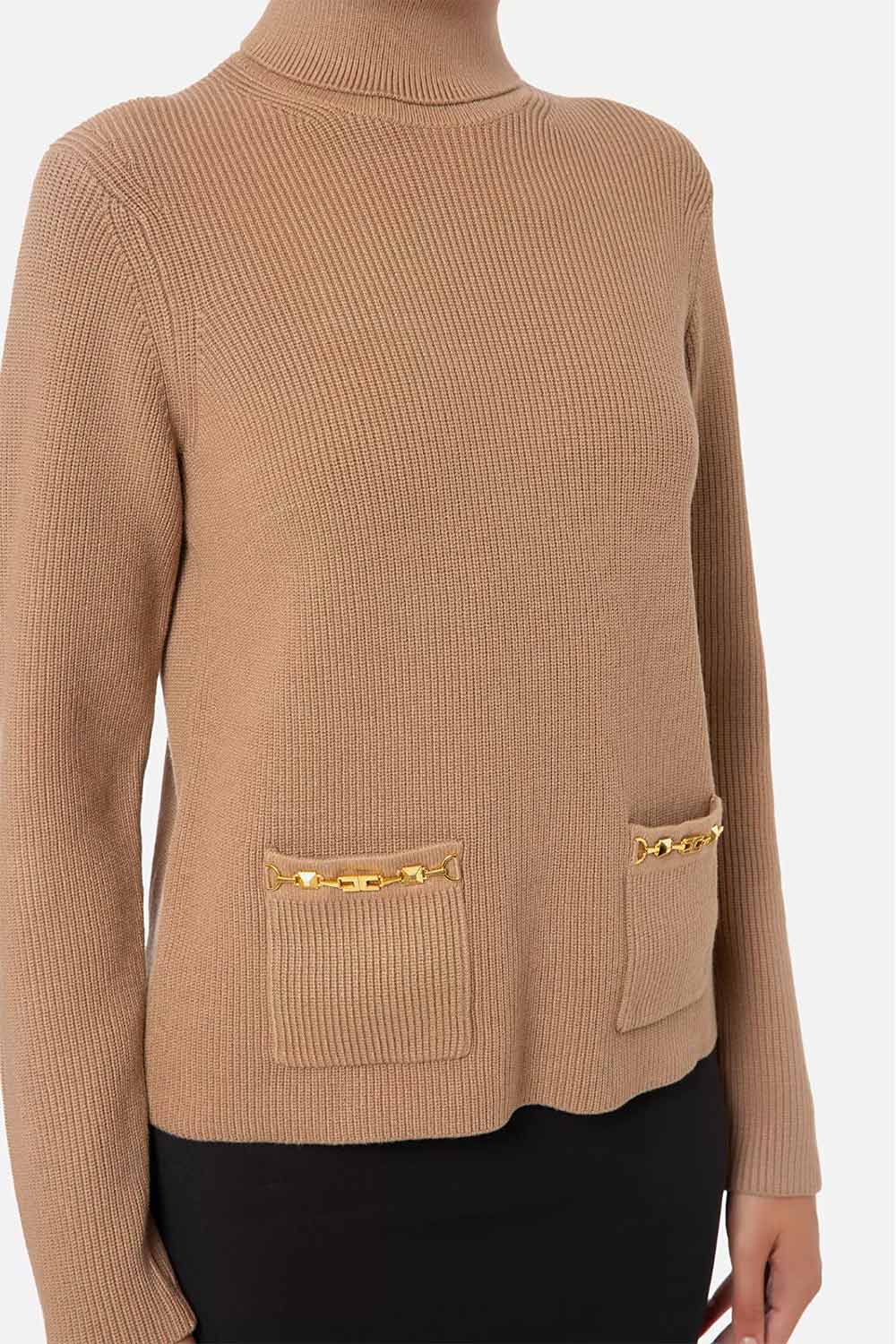 Maglia a Costine con Collo Alto e Dettaglio Morsetto