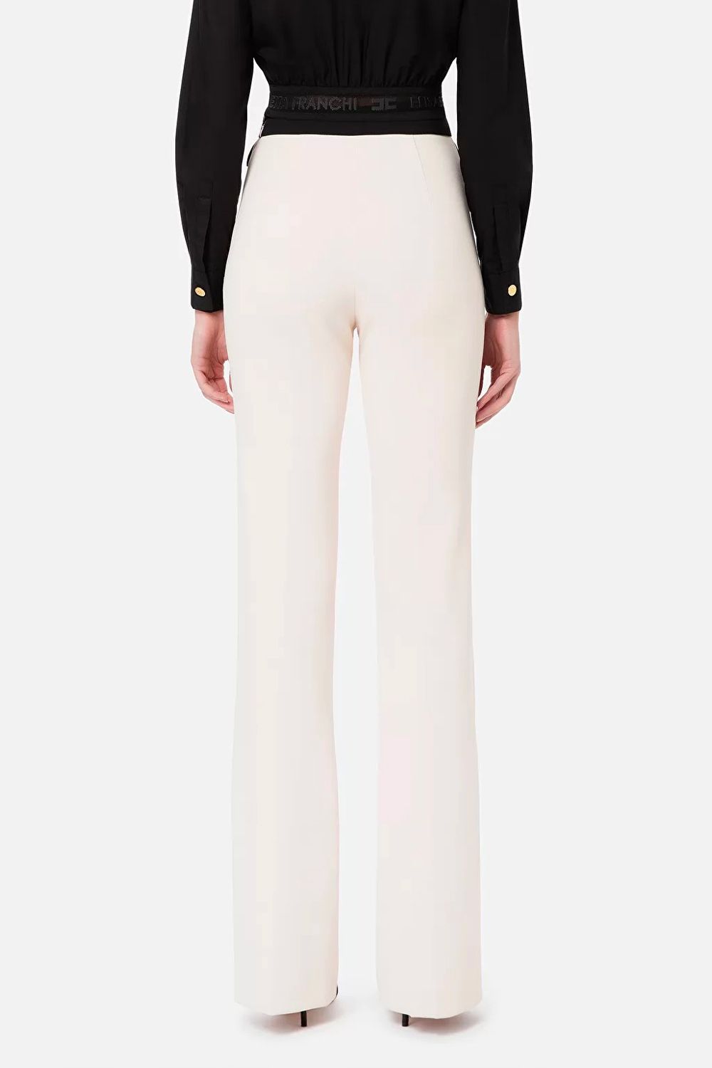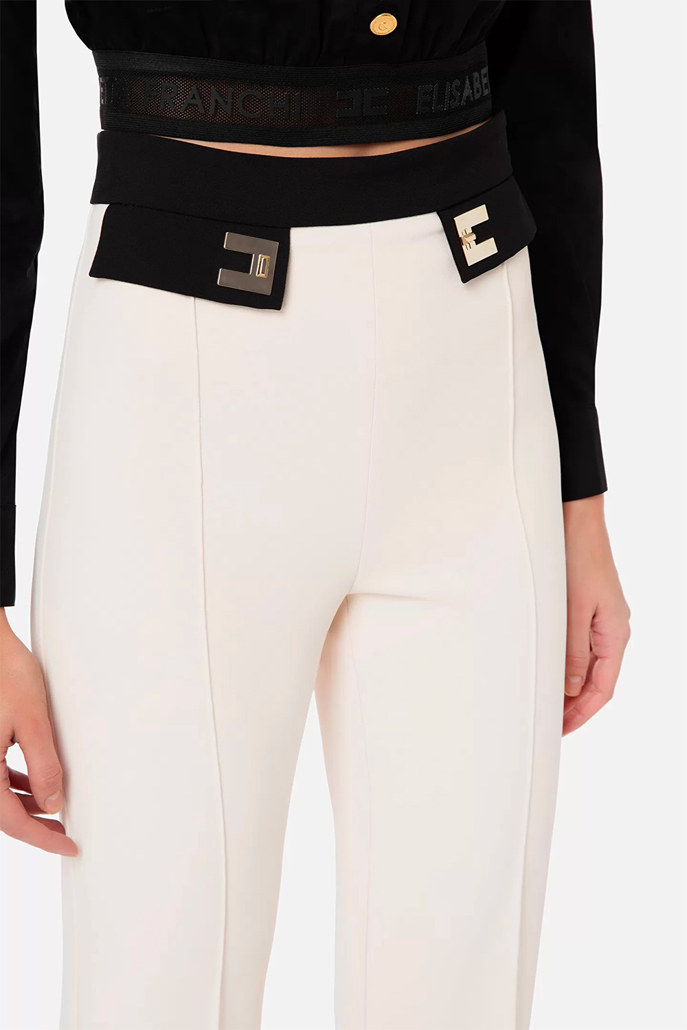 • Crêpe doppio stretch con fascione al punto vita a contrasto colore