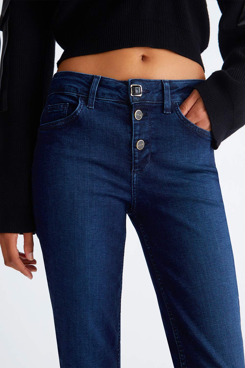 Jeans Skinny con Bottoni Gioiello