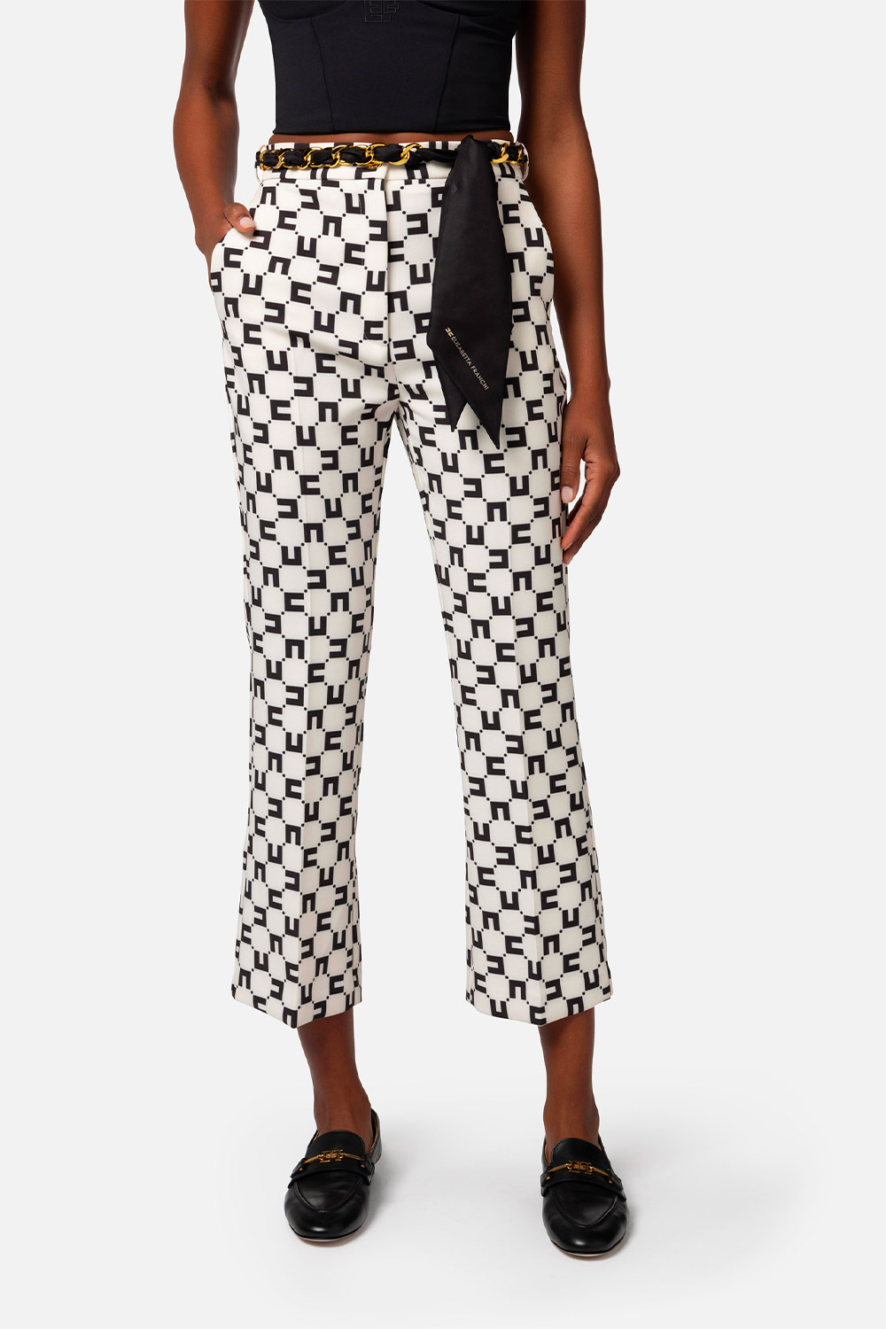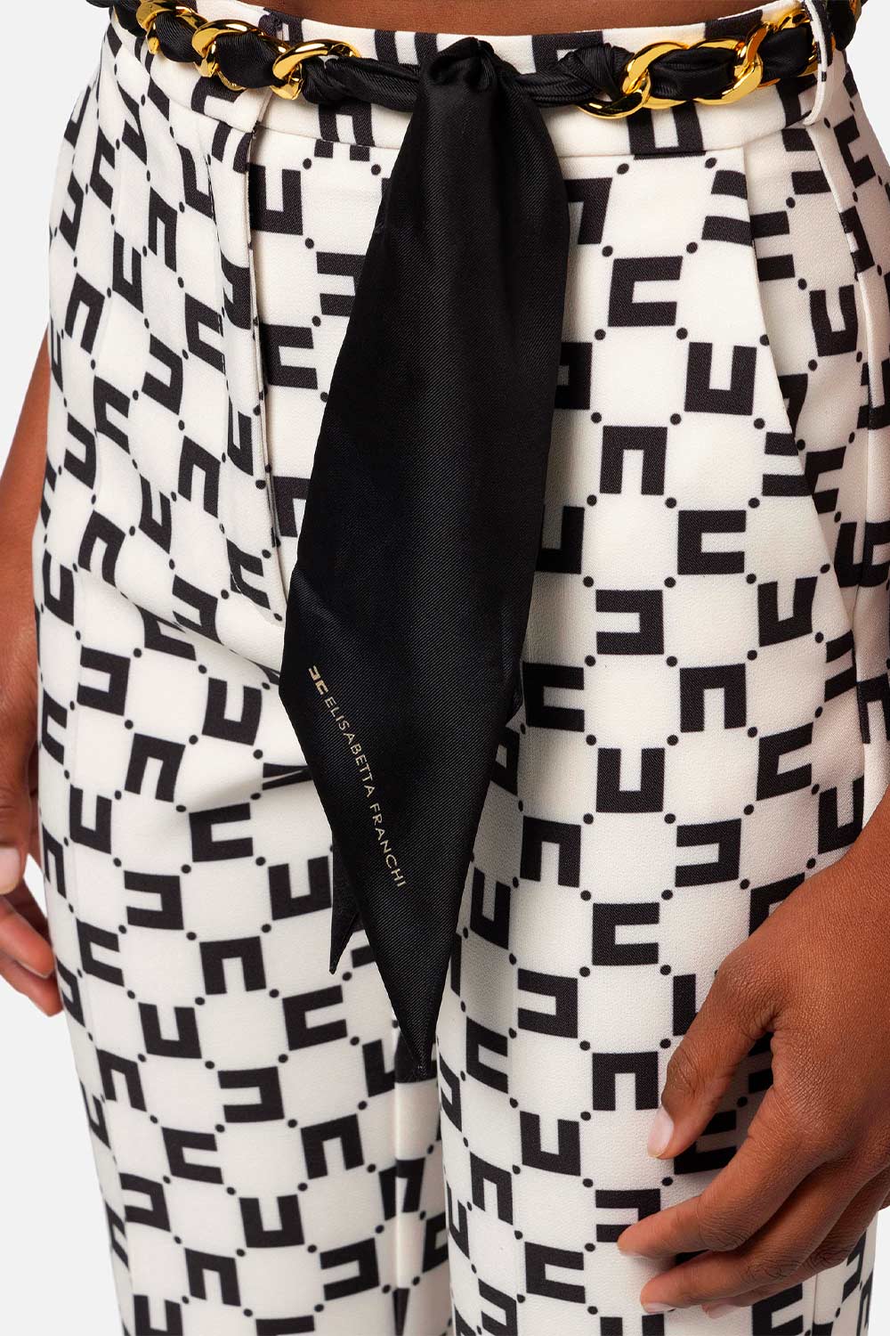 Pantalone a Zampetta Stampa Logo con Cintura Foulard