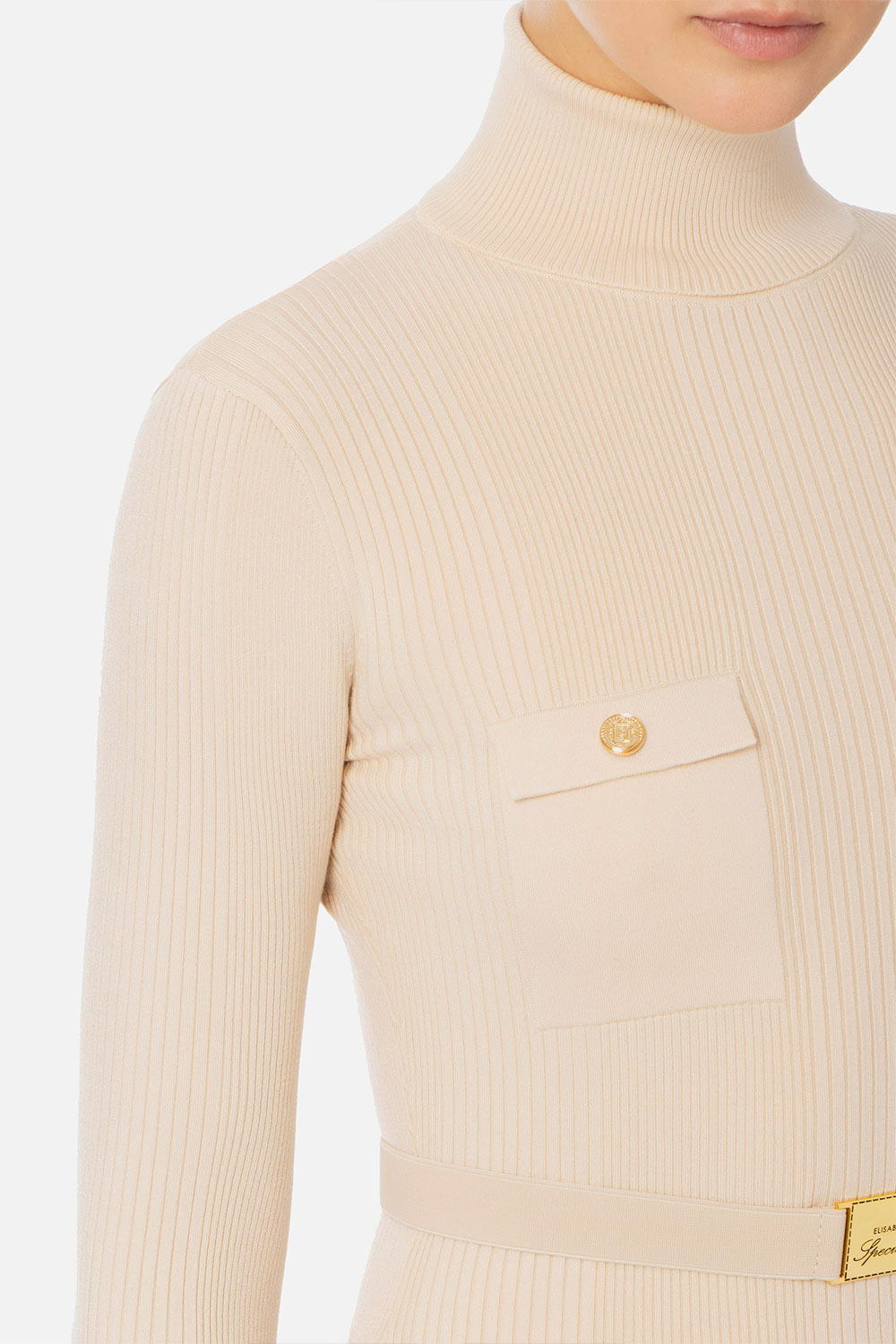 • Punto vita con cintura removibile in elastico logato e fibbia in metallo dorato