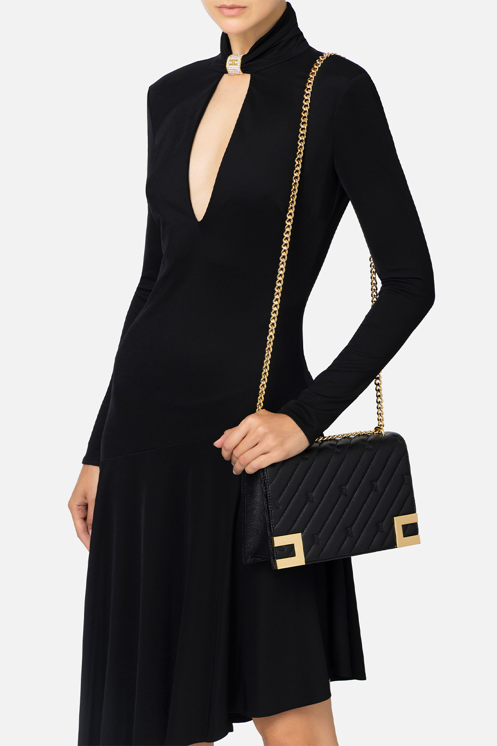 • Tracolla groumette in metallo dorato per portabilità a spalla