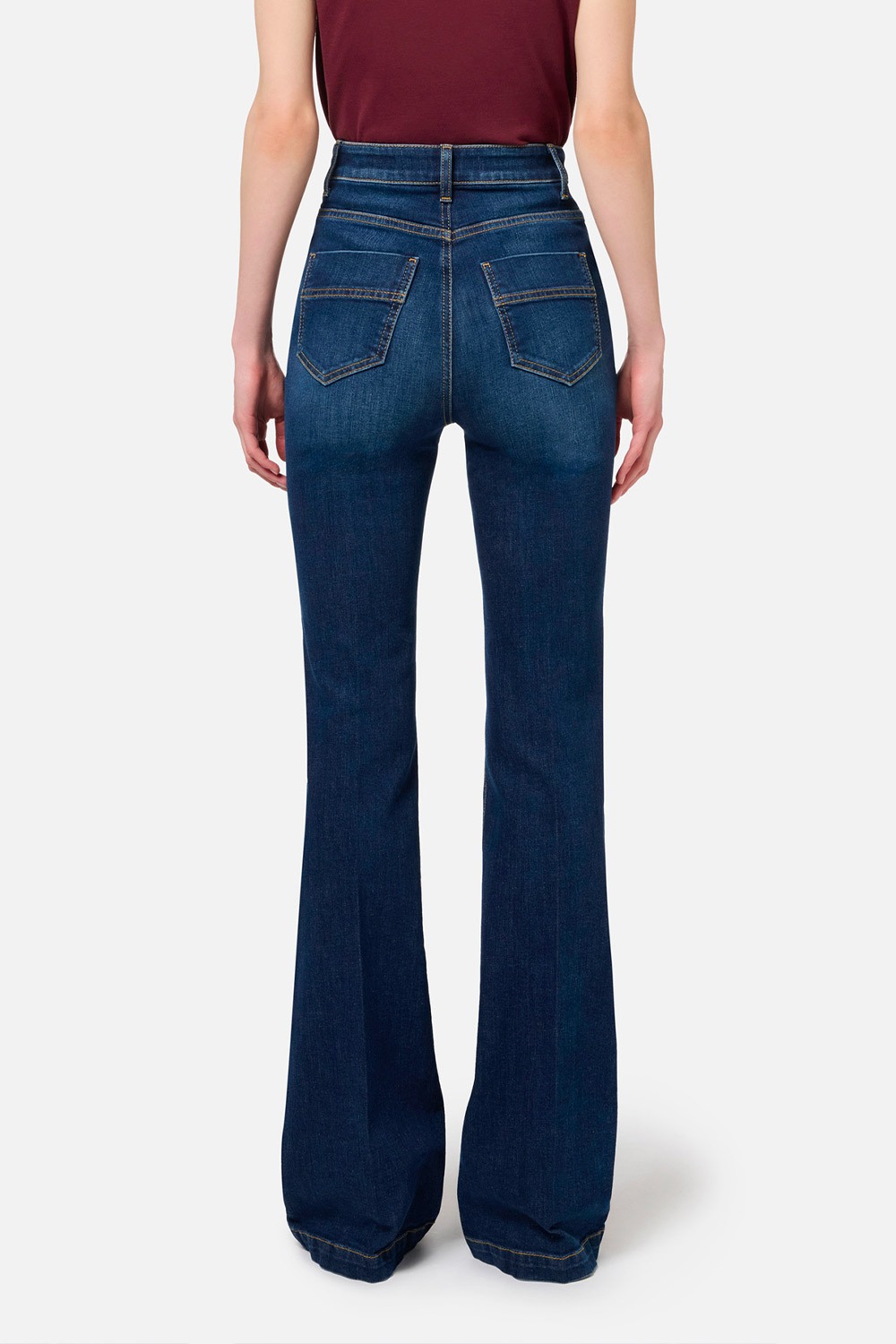 Jeans a Zampa in Cotone Stretch con Nervature