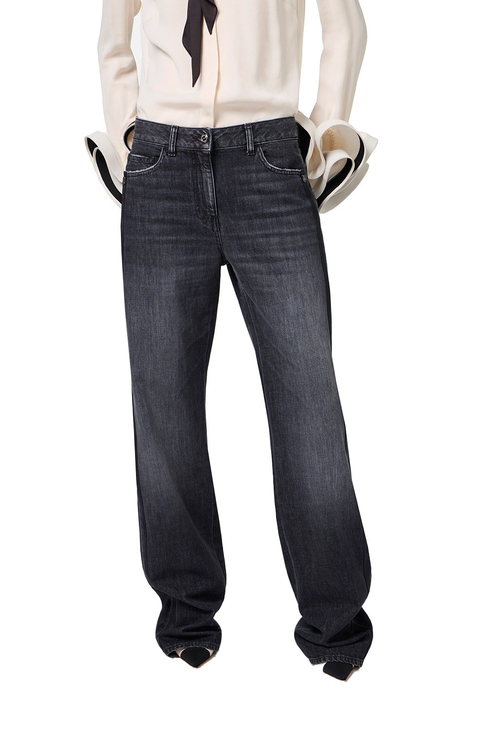 Jeans a Gamba Larga in Cotone Organico con Bande in Raso