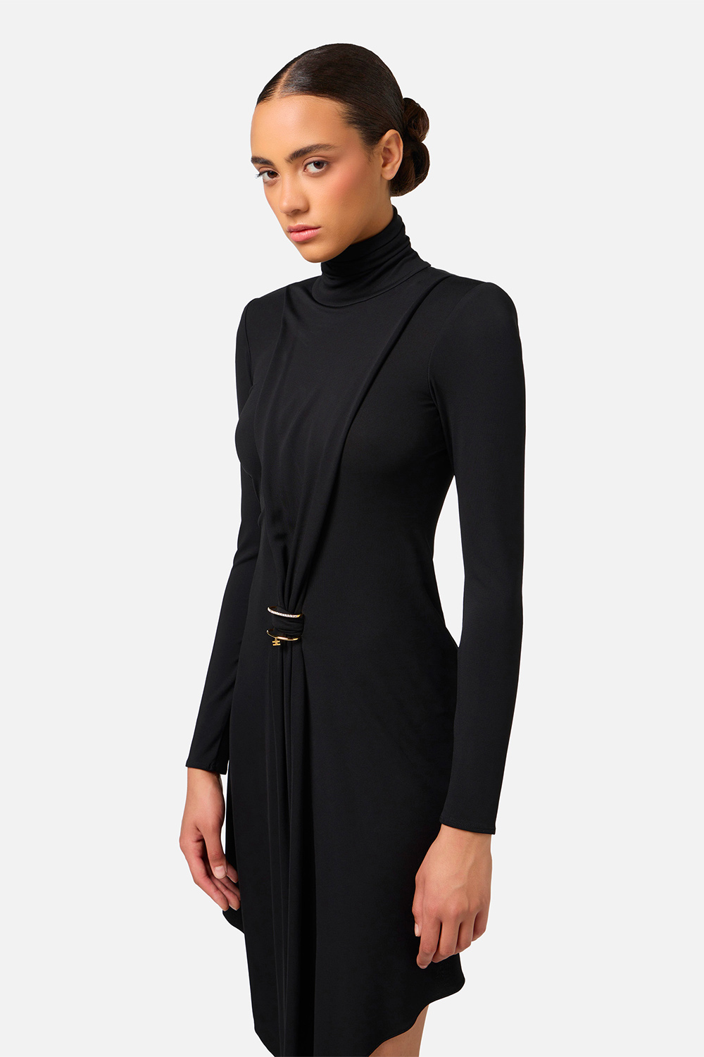 Abito Mini in Jersey con Drappeggio e Accessorio Gioiello