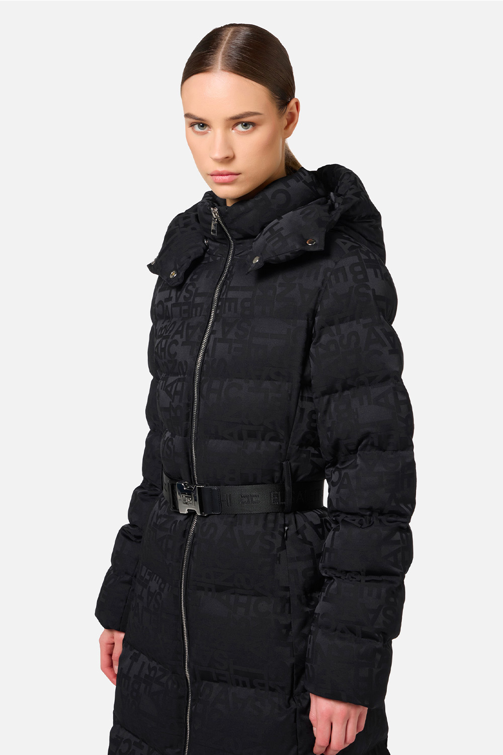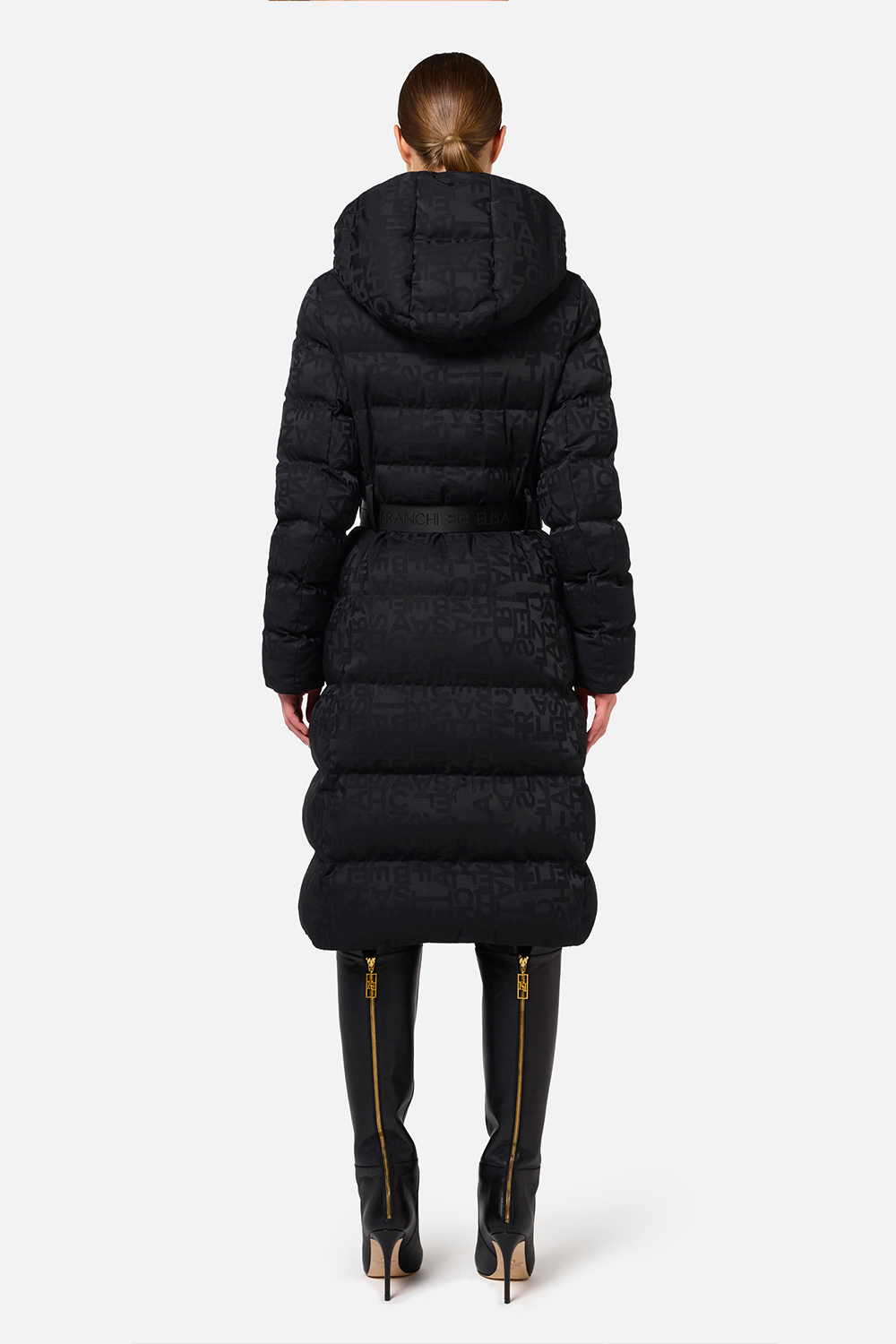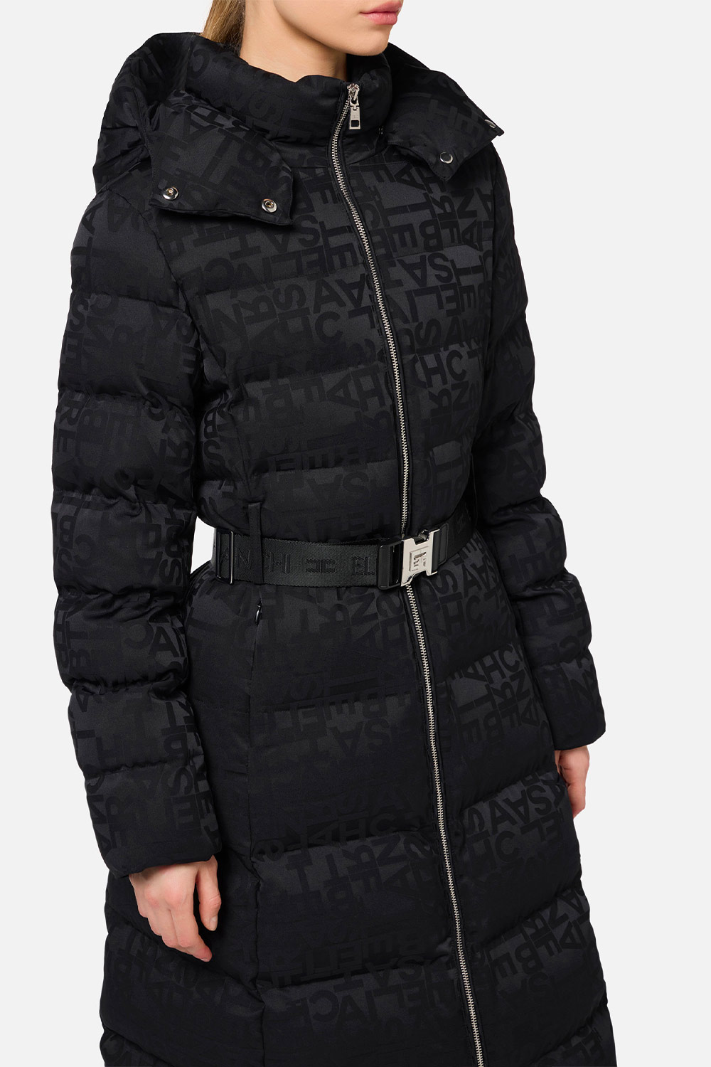 Piumino Lungo in Nylon Jacquard Lettering