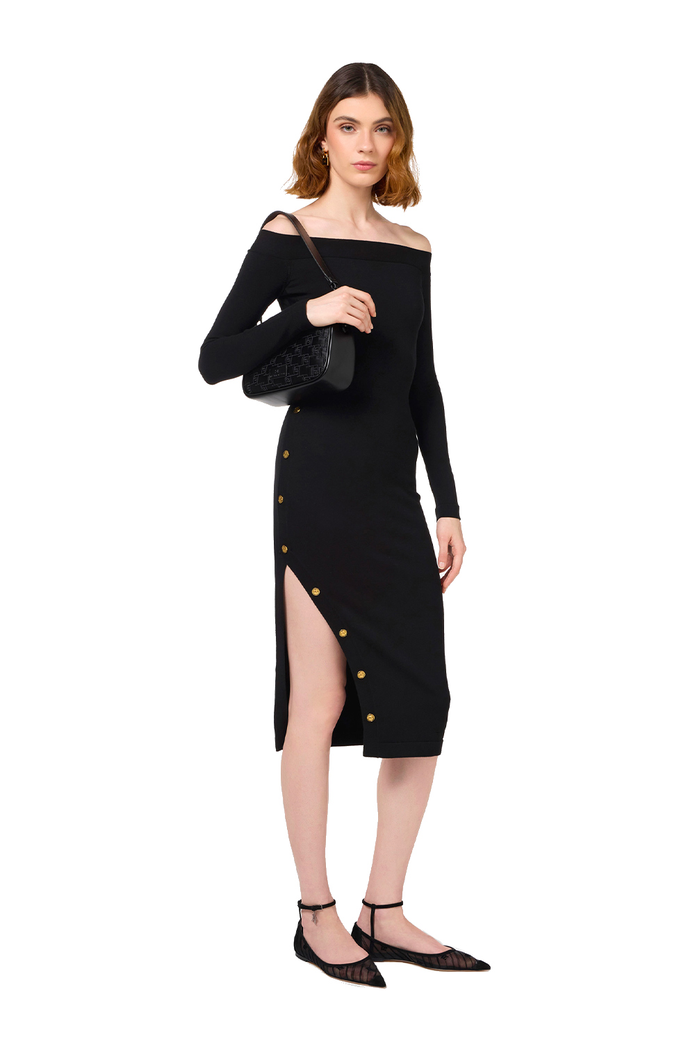 Abito Midi in Viscosa con Bottoni sullo Spacco