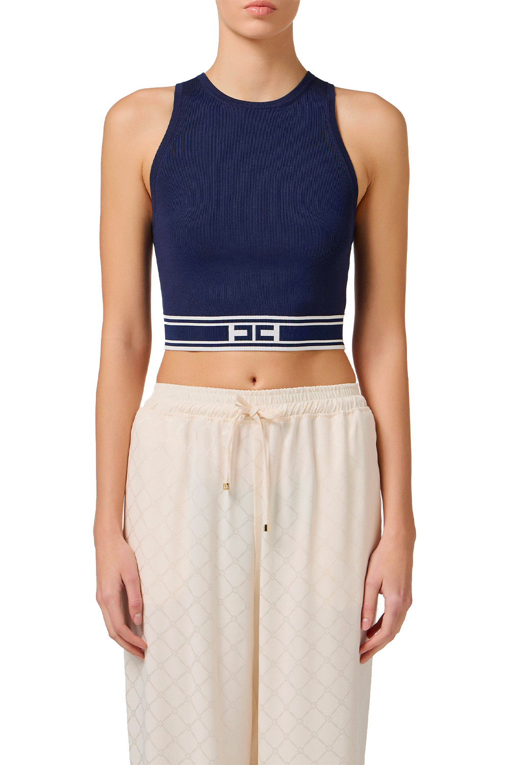 Top Cropped in Viscosa con Bande a Contrasto