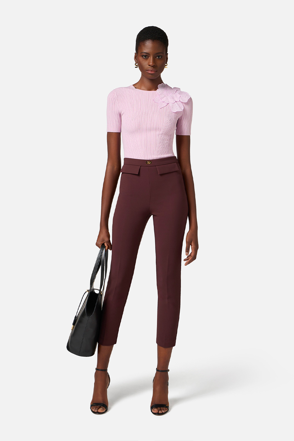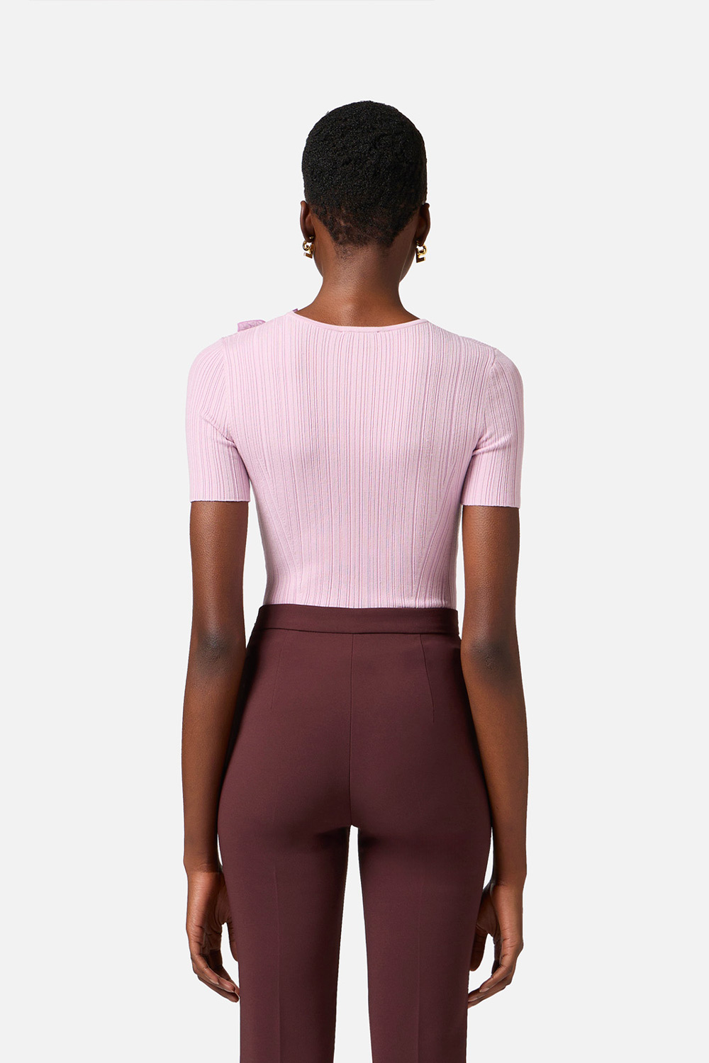 Maglia a Costine con Fiore
