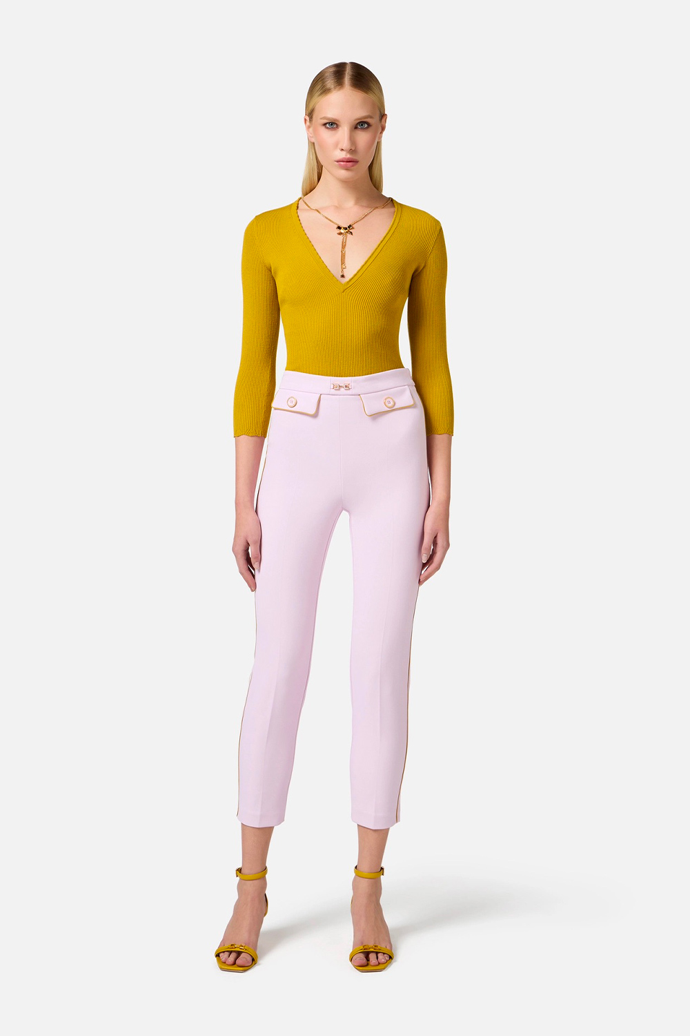Pantalone in Crêpe con Piping e Morsetto Gioiello
