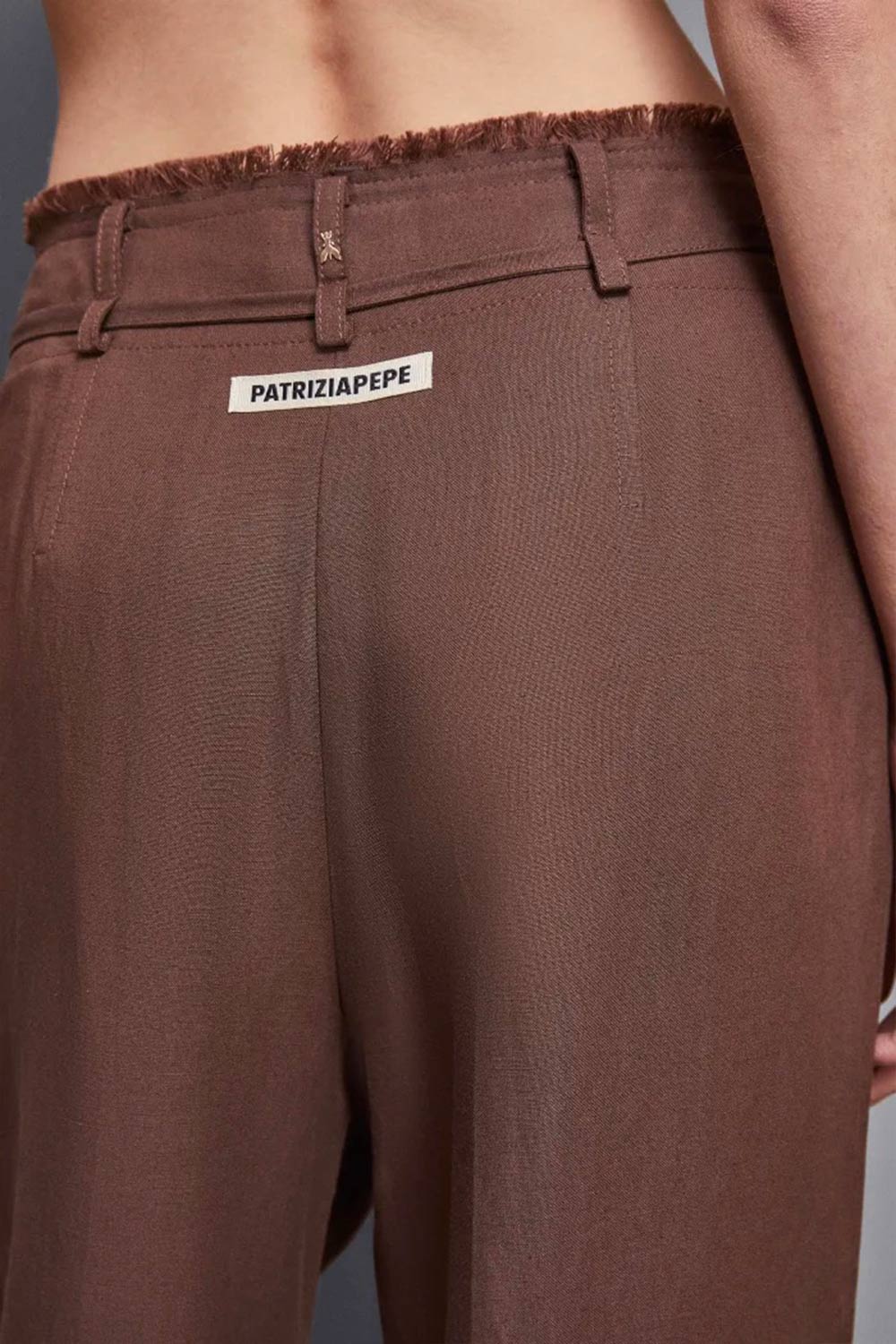 • Dettaglio vita sfrangiata con cinturina in tessuto