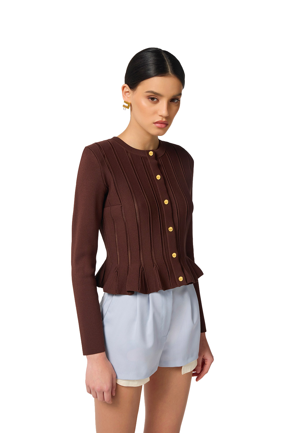 • Giacca in maglia color caffè
