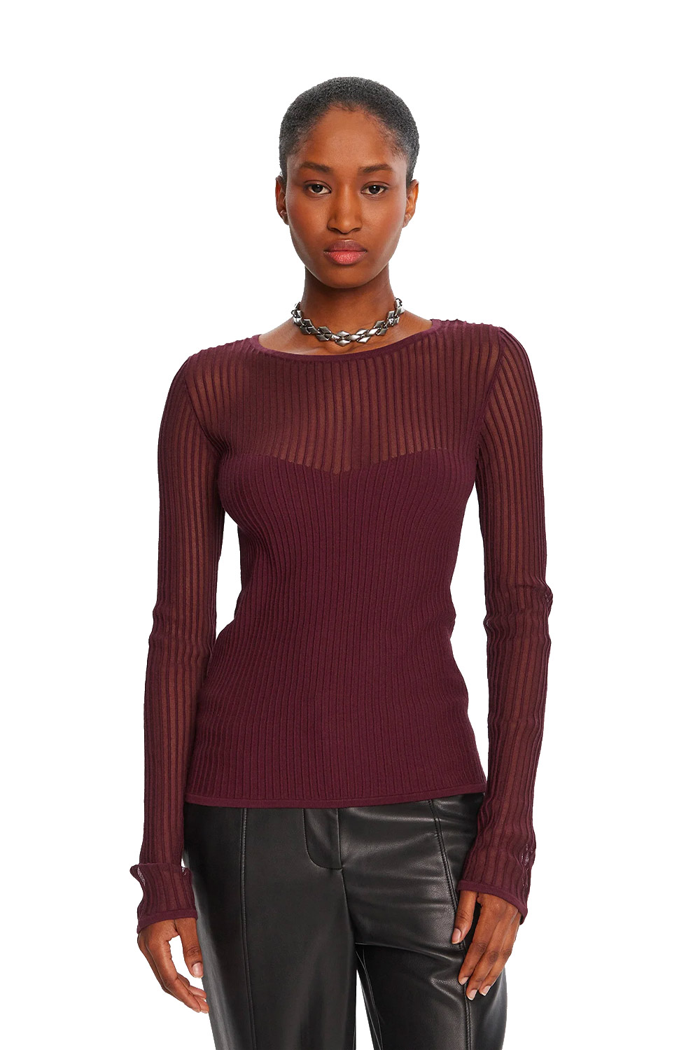 Maglia Aderente a Costine con Dettagli Trasparenti